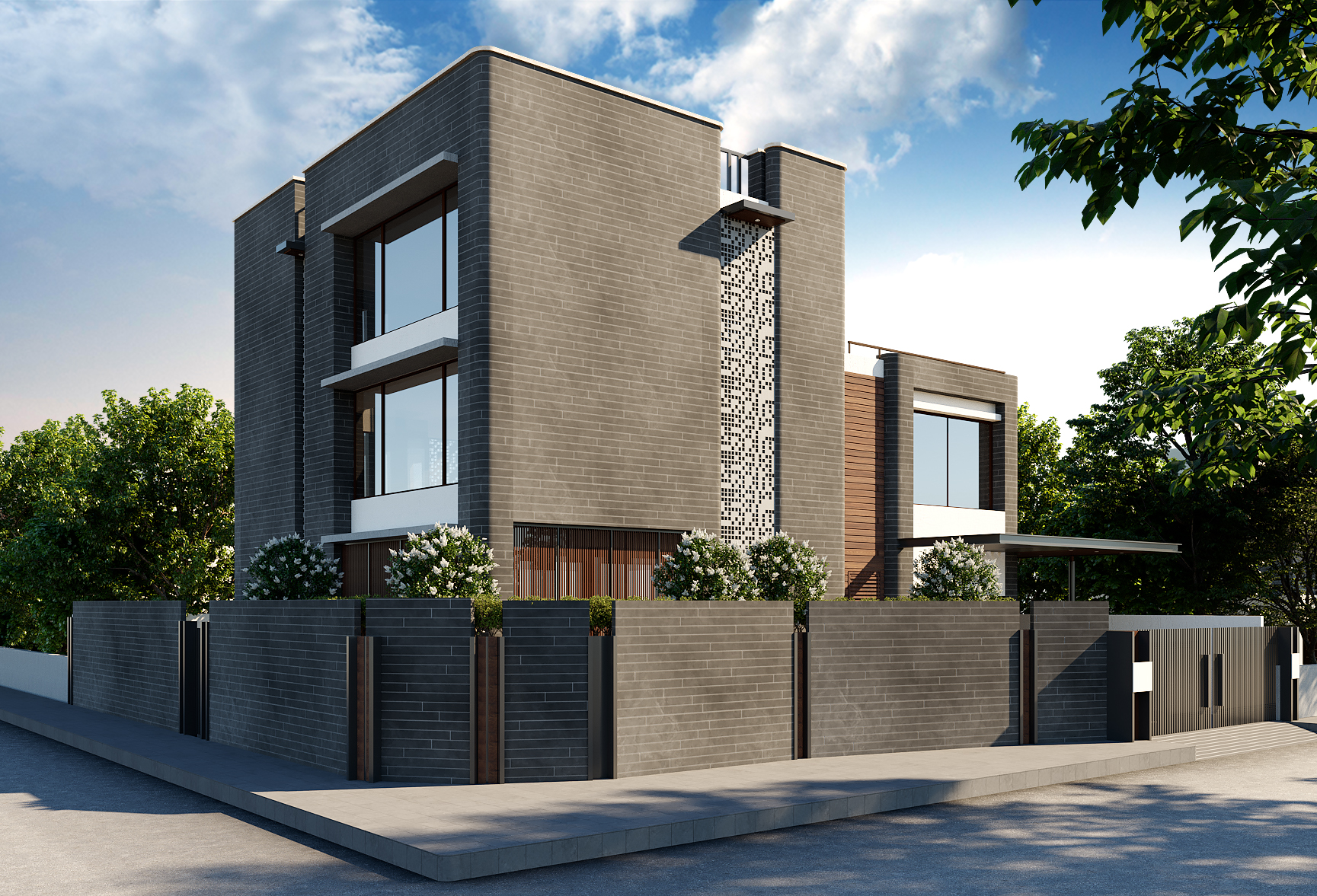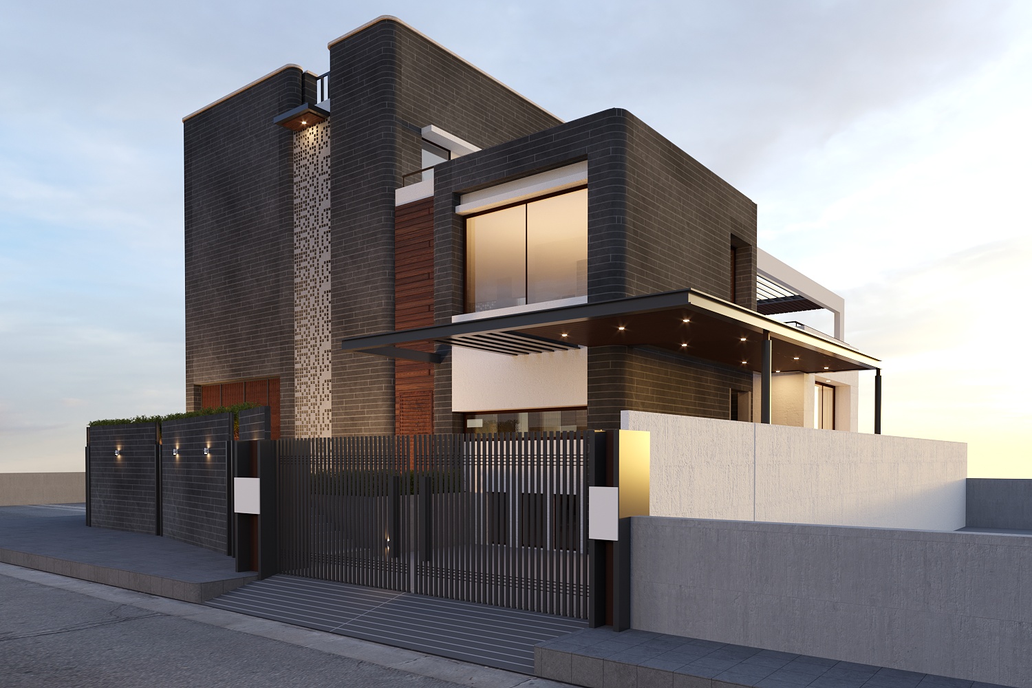 Designed in simple forms, this Residence features its building functions through the articulation of each space treated in the elevation defining its purpose. The use of a singletone design pattern in the exteriors of the building along with a few highlighting elements, gives a minimal et elegant look to the Residence.